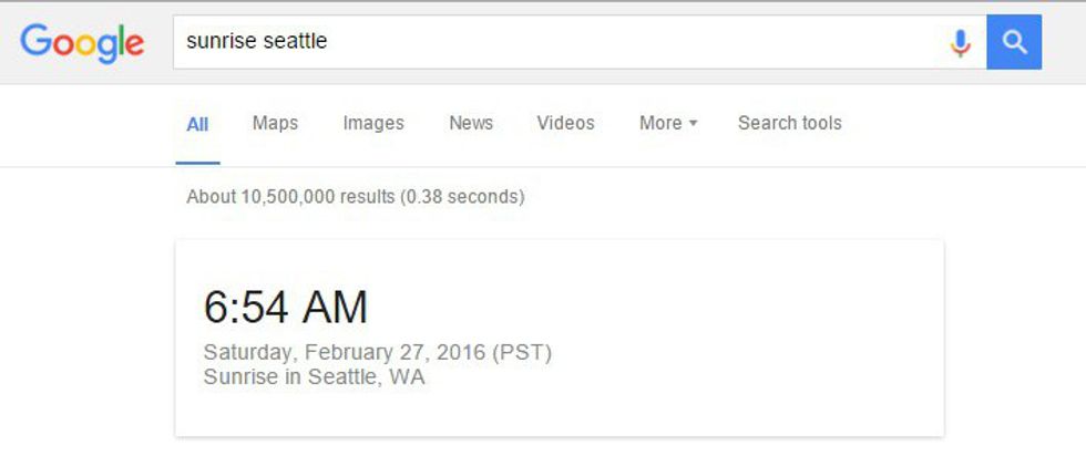 Know exactly when the sun will rise by typing in "sunrise" and then a location.