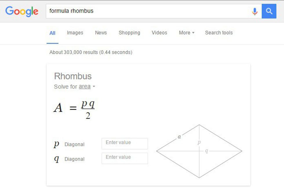 Struggling with math and forgot your notes at home? Get the formulas by searching "formula" and whatever shape you need the formula of. It'll pop right up.