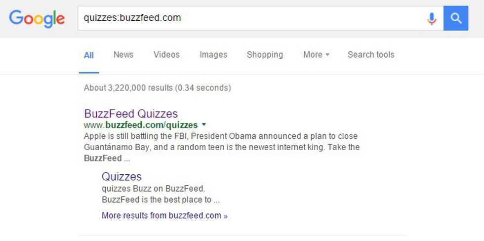 Looking for something specific on a website? If you go into google and type in "quizzes:buzzfeed.com" for example, the first thing to pop up will be BuzzFeed's quizzes page.