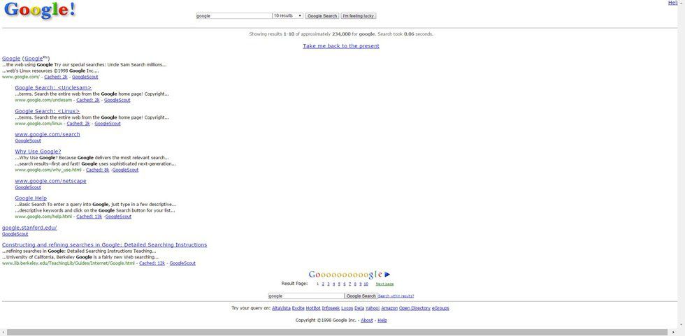 Don't like 2016? Wish things were simpler? Type "google in 1998" and it'll bring you back to an old Google shell.