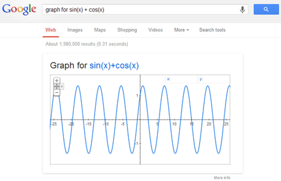 This is similar to searching for formulas. If you need the graph for a trigonometric function, for example, type in "get graph for" and then the equation. Just like the formula, it'll pop right up.