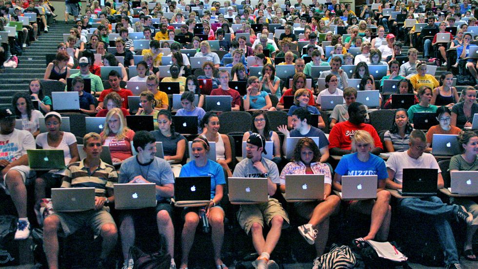 15 years ago, a college classroom was a different place. Students had paper and pen to use to take notes from a professor who would lecture on verbally (most likely without visual aids). If they were nice, they would write an outline on the chalkboard, which, if you were in a big lecture hall and sitting in the back, was impossible to view. Now, technology has evolved incredibly to allow for laptops and smartphones to become commonplace in society. So commonplace, that they are as much of a staple for college students as late night study hours at the library and caffeinated beverages.