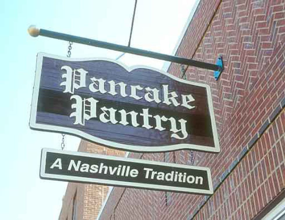 The sign says it all. Nashville Tradition. Part of the tradition is the two hours you have to wait in line on a Saturday morning to eat there but it's worth it.
