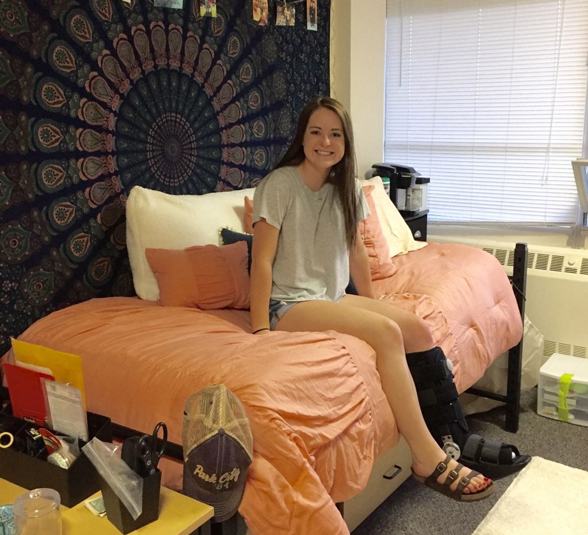 I was lucky enough to break my foot the summer before I started my freshman year of college. One week after having surgery I packed up my bags and drove across the state with my parents to start the next, supposedly one of the most exciting, chapters of my life. The only thing holding me back was the fact that I couldn't walk and had to instead rely on a knee scooter or crutches, whichever I was feeling, to get around. These are just a few of the thoughts that ran through my head during the first two and a half months of my college experience.