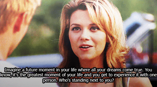 13. “Imagine a future moment in your life where all your dreams come true. You know it's the greatest moment of your life and you get to experience it with one person. Who's standing next to you?” - Peyton Sawyer