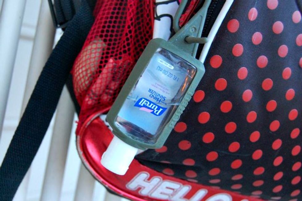 She always has hand sanitizer on-hand, and typically lots of different scents. You'll be sure to know it's her when you can see the Bath and Body Works hand sanitizer hanging off her backpack.