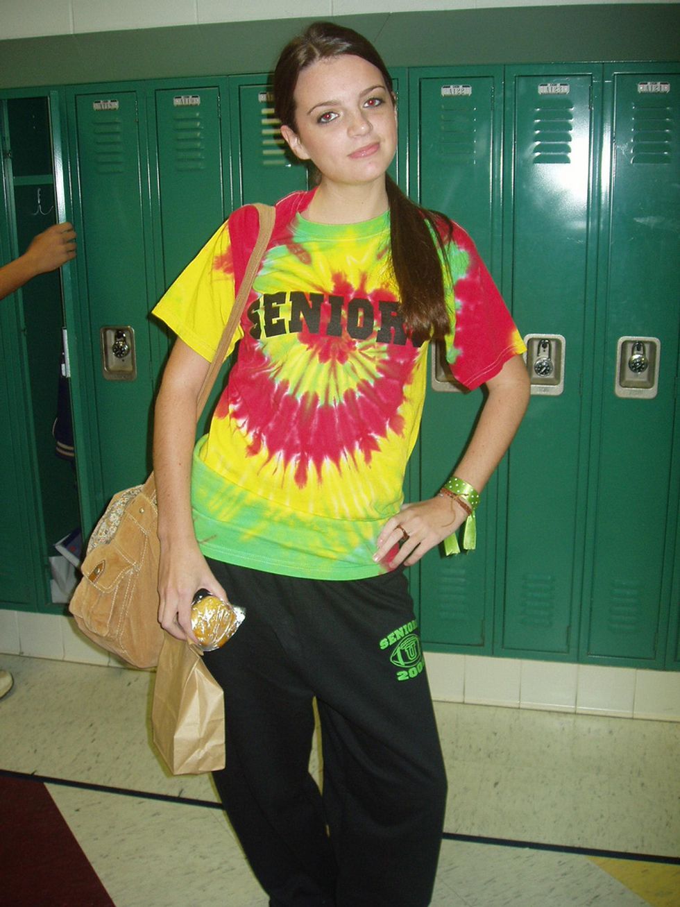 High school is where girls put maximum effort into their makeup and style. This girl on the other hand can be seen in sweats, a t-shirt, and sweatshirt every single day of the year. Probably even on picture day.