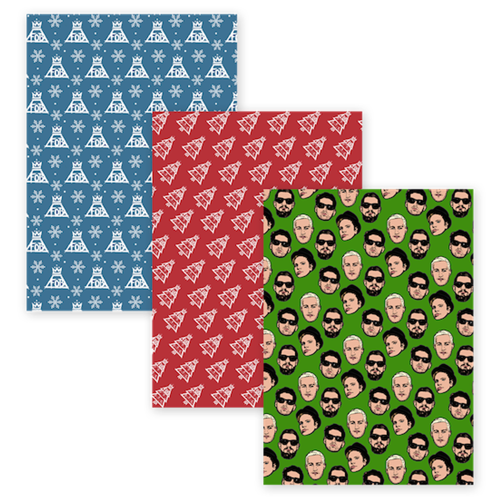 Well, you’re going to need something to wrap all these wonderful musical gifts up in, aren’t you? What better than the faces and logo of the one band from the early 2000s that has managed to survive it all and continued to exist. Good for you, Fall Out Boy. Dance dance, mumble mumble, and a happy holiday.