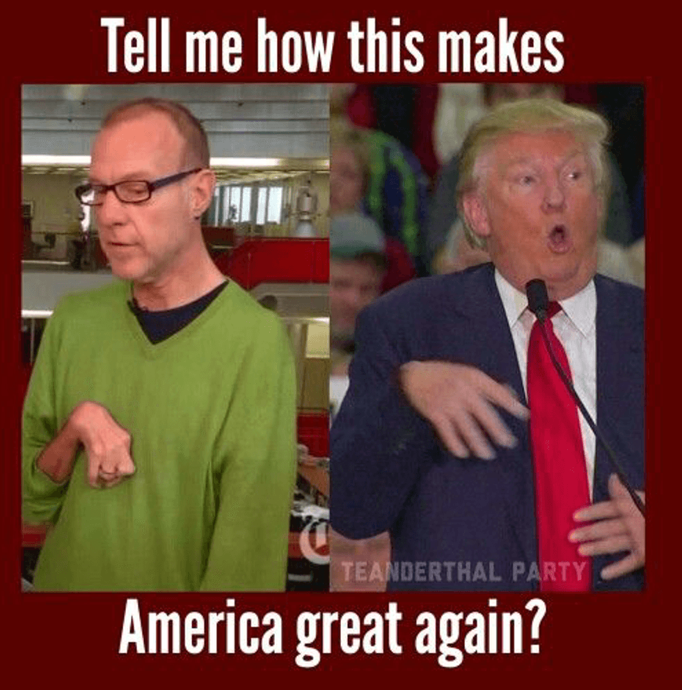 If you support someone who makes fun of those with disabilities, you have just lost my respect. It is never okay. Enough said.