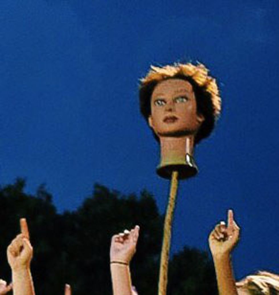 She is a fake head on a stick. She comes to all of the games to cheer on her Prattville Lions.