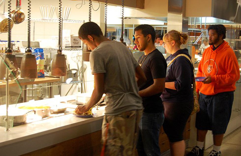 The dining hall food is already terrible, and now we have to stand in line and starve while we wait for it. Avoiding busy times at the dining hall is hard, especially when our schedules are crappy. Sometimes the best thing we can do is just grab something small to snack on while we wait.