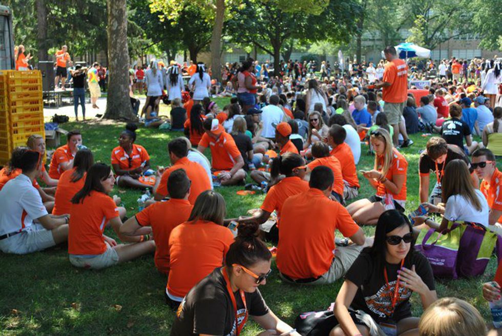 Orientation Day is an exciting time for high-school students to come on campus and check out BGSU. However, now that we are students, Orientation Day is one of the worst days of our lives. It's hard to go into dining halls or the Union for lunch or to get to class with everyone here, not to mention the tours think they own the place and don't make room for us on the sidewalk, forcing us to walk in the grass or on the street, or they block the entire hallways when we are trying to get to class. Yes, we were there once, and it's not that we aren't looking forward to welcoming the new Falcons, but we pay to live on campus, is it too much to ask for a little respect when visiting?