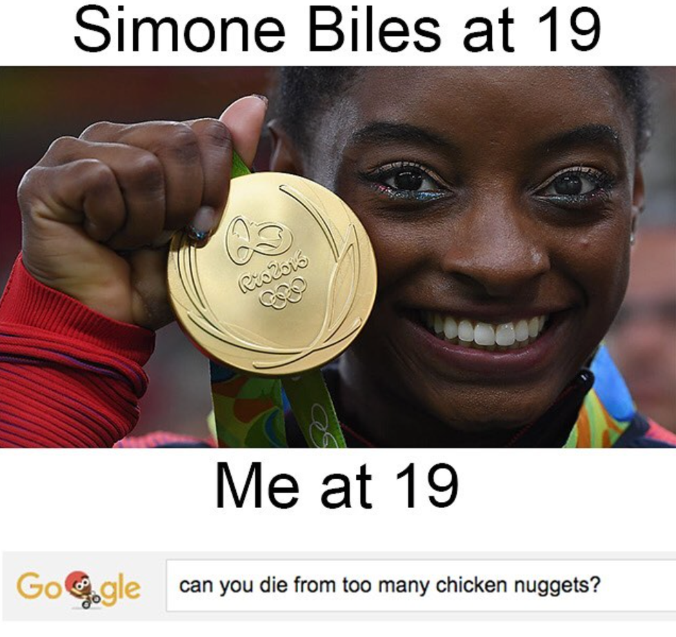5. If I die from too many chicken nuggets, I want to be reborn with the success of Simone Biles.