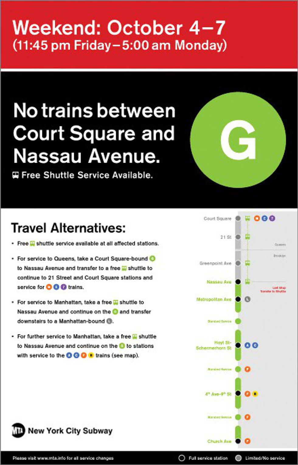 14.) Enjoy the peace of no service on the subway.