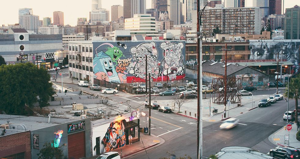 Los Angeles is known in part for its art scene, and the arts district does this notion justice. All it takes is a little strolling around and you'll discover several photo-worthy walls, some with intricate murals and others with a single bold color covering them. The infamous angel wings with the black background can be found on West 3rd Street. (There's an Urth Caffe around the corner, too.) Visit Melrose Ave in Hollywood for more pretty walls!