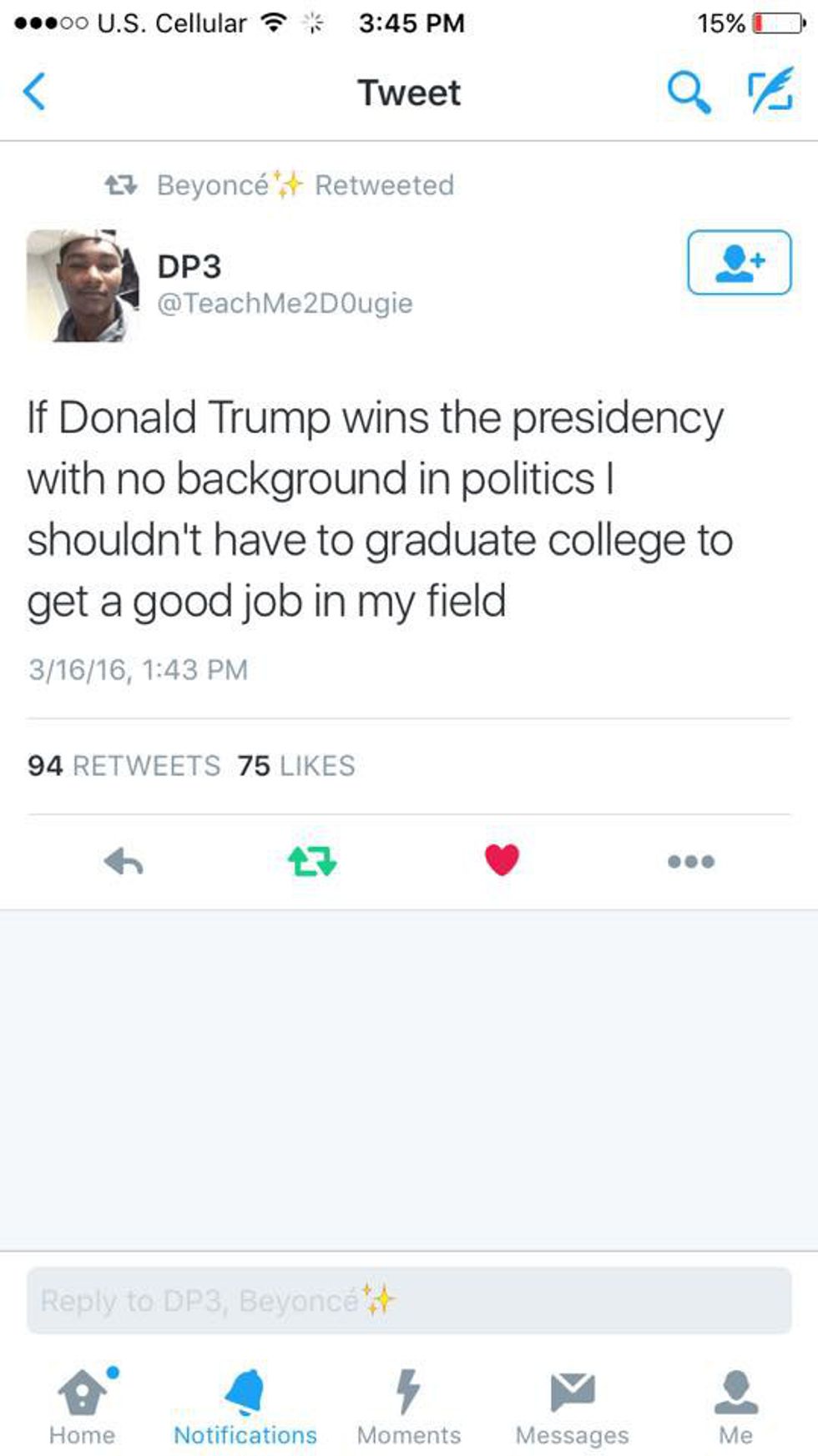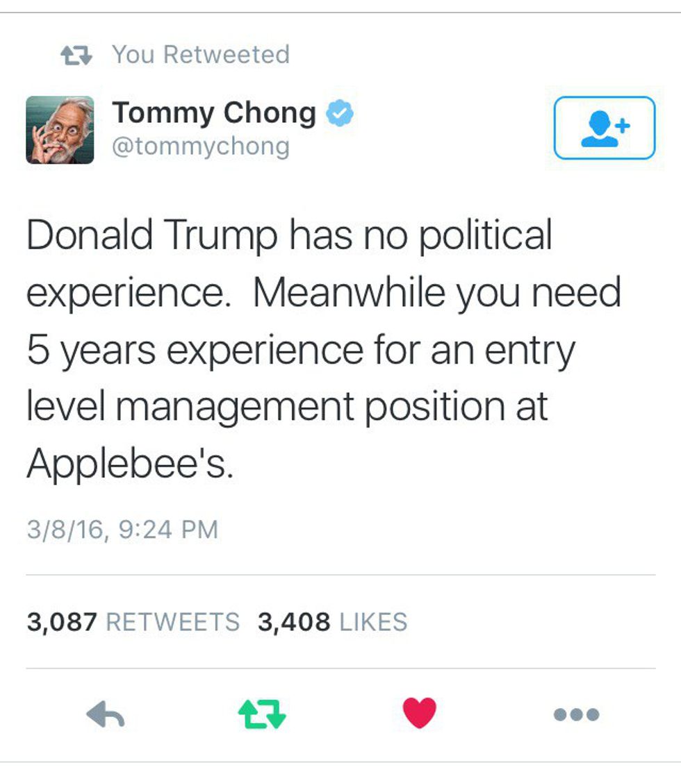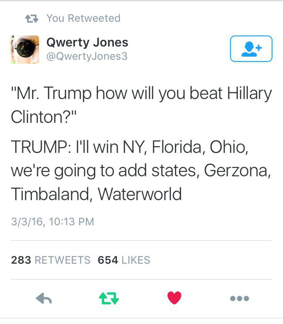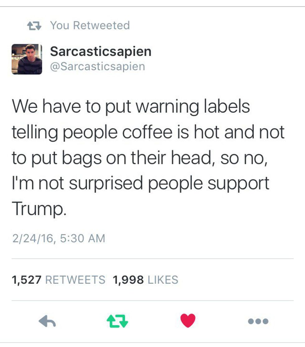 Regardless of my own reasoning, this is dedicated to all of the other social media fiends who use hashtags, like #DumpTrump and #DonaldDrumpf, on the daily. Take your Internet trolling all the way to the voting booths because an America with Trump at the helm isn't truly America at all.