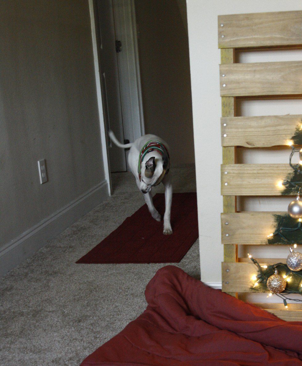 My dog, Daisy (pictured above eating her Christmas sweater), hates Christmas clothes, but she sure does look cute in her little Christmas sweaters (maybe one day she’ll love it as much as my other dogs). It sure does bring joy to the household.