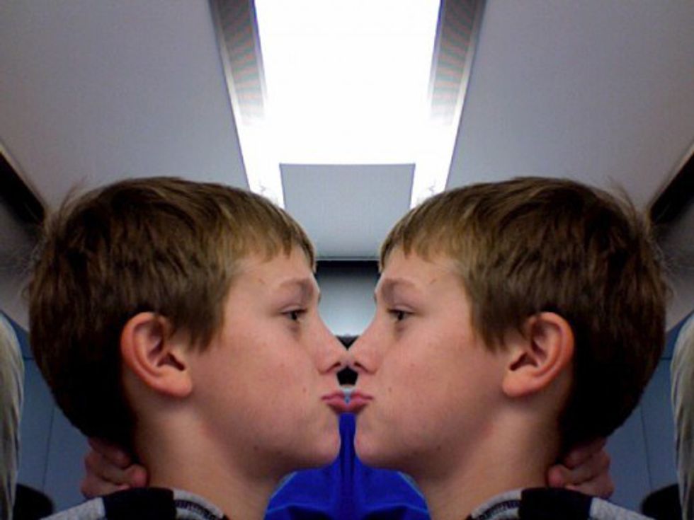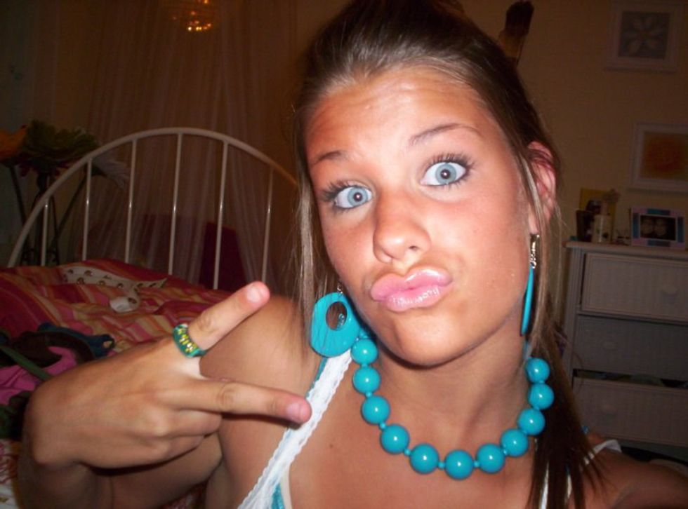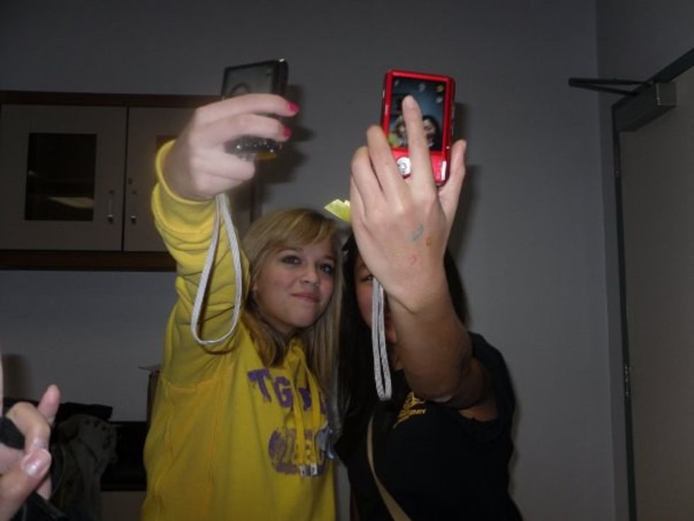 13. Taking Selfies on a Digital Camera, throwing up the peace sign, and making kissy faces