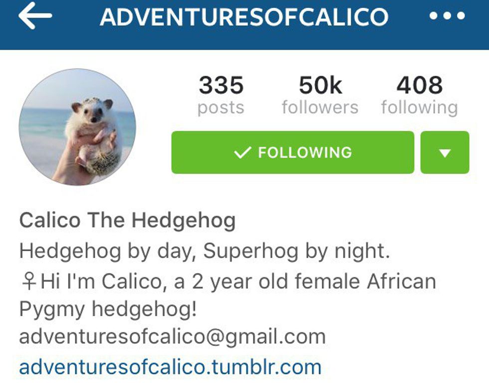 4. Adventures of Calico - An African pygmy hedgehog with a lot of spunk and a knack for traveling (and taking really adorable pictures along the way).
