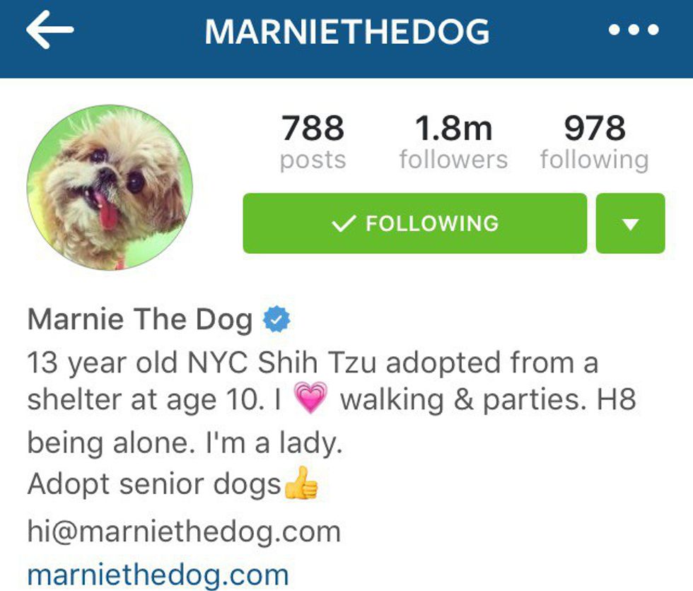 8. Marnie The Dog - A 13-year-old shih tzu with a sideways smile that will guarantee to make you smile