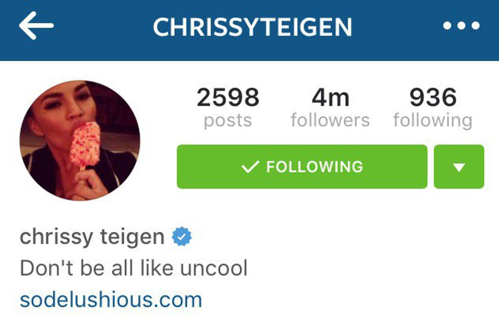 9. Chrissy Teigen - Model and wife of John Legend who's humor and personality makes her one of the more relatable celebrities. Although she doesn't really do anything in particular, she's pretty good at just living life. (Bonus pictures of John Legend and home cooked meals are included).