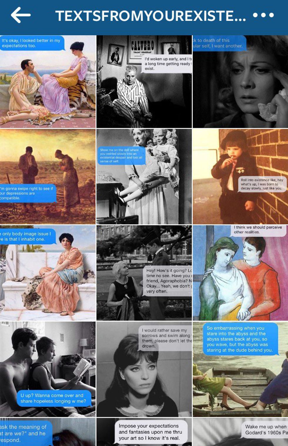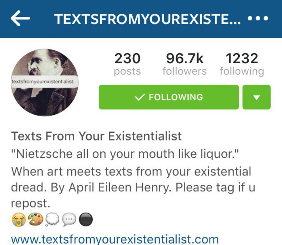 11. Texts From Your Existentialist - existentialist art meets texting. A quick way to insert some humor and culture into your feed.