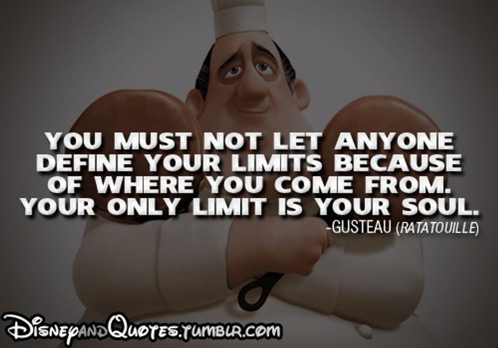 We often let our past dictate our present and our future. We base our decisions on the opinions of others and classify success based on outward appearances and factors rather than by potential. We also often use the past as a hindrance rather than a guide for our future. Disney has showed me thought that we must learn from the past and use it to better our future rather than to prevent our future from occurring. Our only limit is our self.