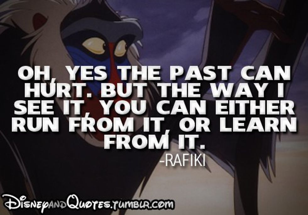 In life we often get so caught up with the little things that go wrong that we forget to admire the beauty and greatness that surrounds us. We all go through hardships at some point in our life but is important to remember that happiness will return eventually and we cannot dwell on the negative or else it will pass us by. We may go through a loss, such as Simba did in the Lion King or Tiana in Princess and the Frog, but we must use those experiences to make us stronger rather than to stop us from enjoying the beauty of life in front of us.