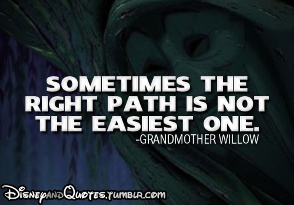 When making our decisions we often do so based on what will be easiest for us. Disney has taught me though that it is not always right to pick the easiest choice, but we must pick what is the right thing to do. Life is not always black and white and sometimes we have to make tough decisions that may not be the best for us but will be the best decision because they are the right decision, it is those decisions that we must make.