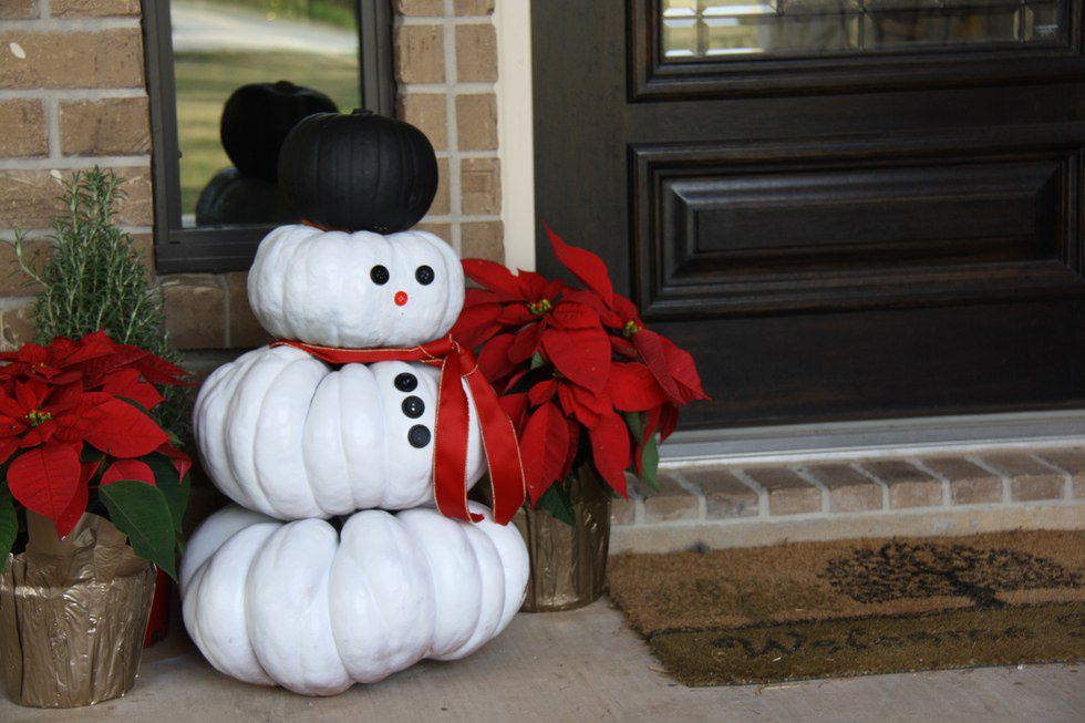 If you love making snowmen, but are awaiting the snow, try your hand at a pumpkin man.