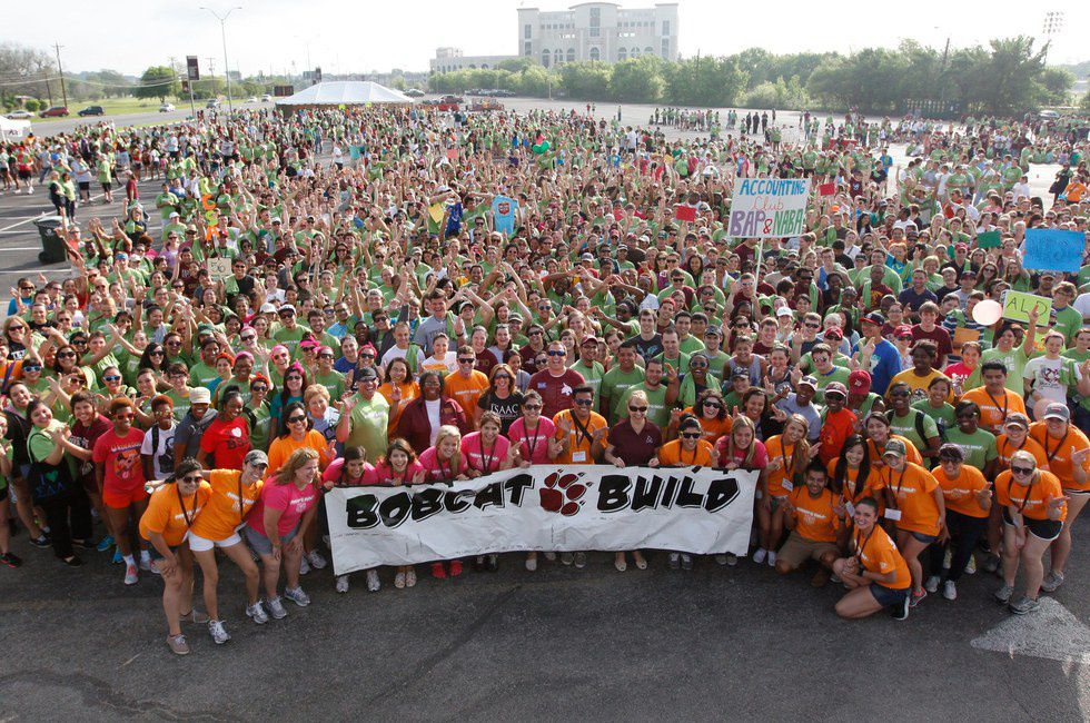 The Texas State website describes Bobcat Build as: “...a Texas State University tradition that serves as the largest service project on campus. It is also the second largest, one-day community service project in the state of Texas. The name itself symbolizes our goal of strengthening the bond between Texas State University and the community of San Marcos. Every spring semester, students volunteer their time to complete various service projects throughout the community such as landscaping, painting, or clean-ups at residents’ homes, local schools, parks, churches, and neighborhoods. Over the past 10 years, the event has grown in participation from approximately 700 volunteers at 50 jobsites to nearly 4,000 volunteers at over 250 jobsites within the San Marcos community!”