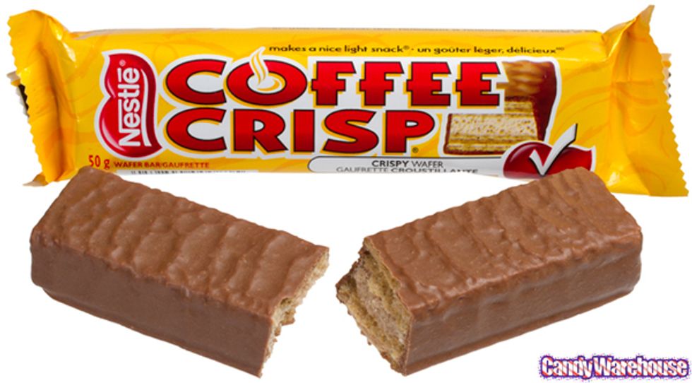 There are several chocolate bars in Canada not available in the US. Candy bars like Coffee Crisp, Aero, Crispy Crunch, Smarties, Caramilk, Crunchie, and Wunderbar. I just spent an unreasonable about of money ordering Coffee Crisps to be sent to me. So... I am completely sold on Canadian chocolate.