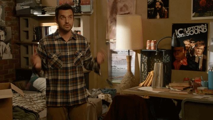 Sometimes we have to get creative and use what's around us. Nick Miller does this too, refusing to use a fork when he can use his hands. Sometimes forks can be so inconvenient.