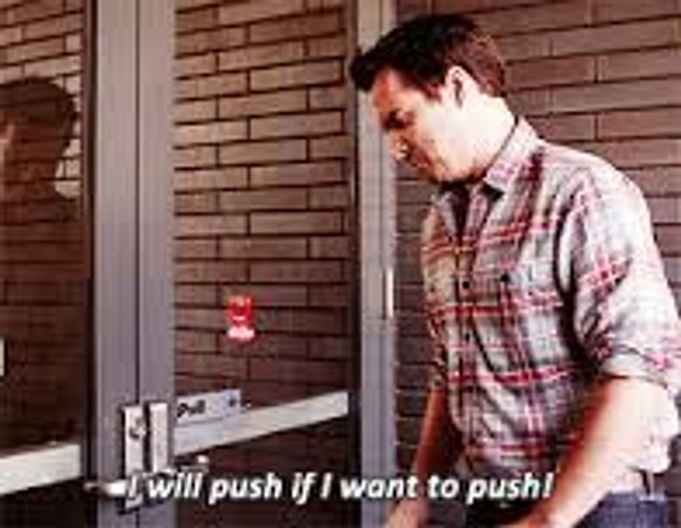Nick hates doors. So in one episode when he encounters a "pull" door, he tries to push it open. However, he finds that by doing this he can't actually get into the door.