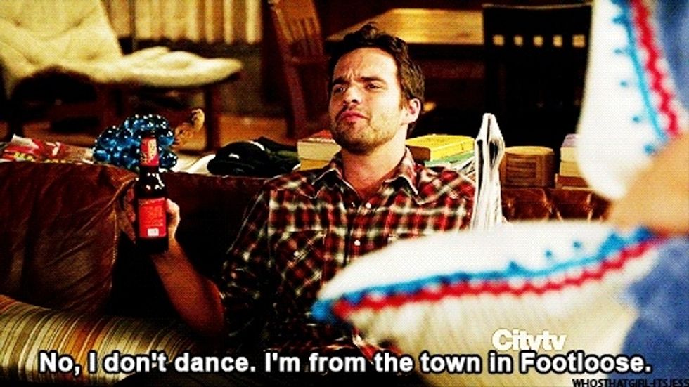 Nick Miller can't dance, at all. Yet, in one episode when Jess breaks up with a boyfriend, he tries to cheer her up by dancing to Taylor Swift's "22." We see how bad he is, yet he's willing to do it to cheer up a friend.