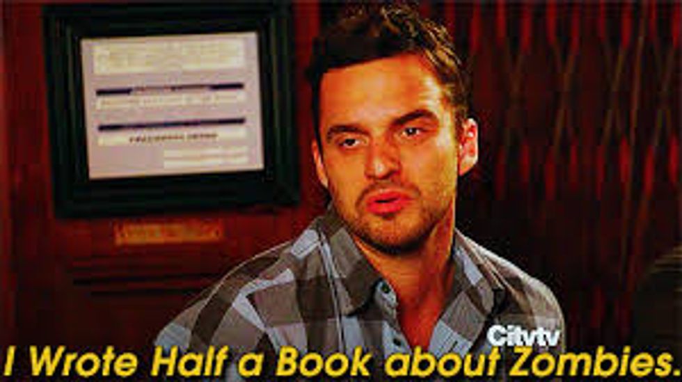 In his life, Nick hasn't accomplished many astounding things. He tried to go to law school, then dropped out, he works as a bartender, and he tried to write a zombie novel. He ended up finishing it but after years of procrastination. Before he actually finished the book, he liked to brag about only getting half of it done.