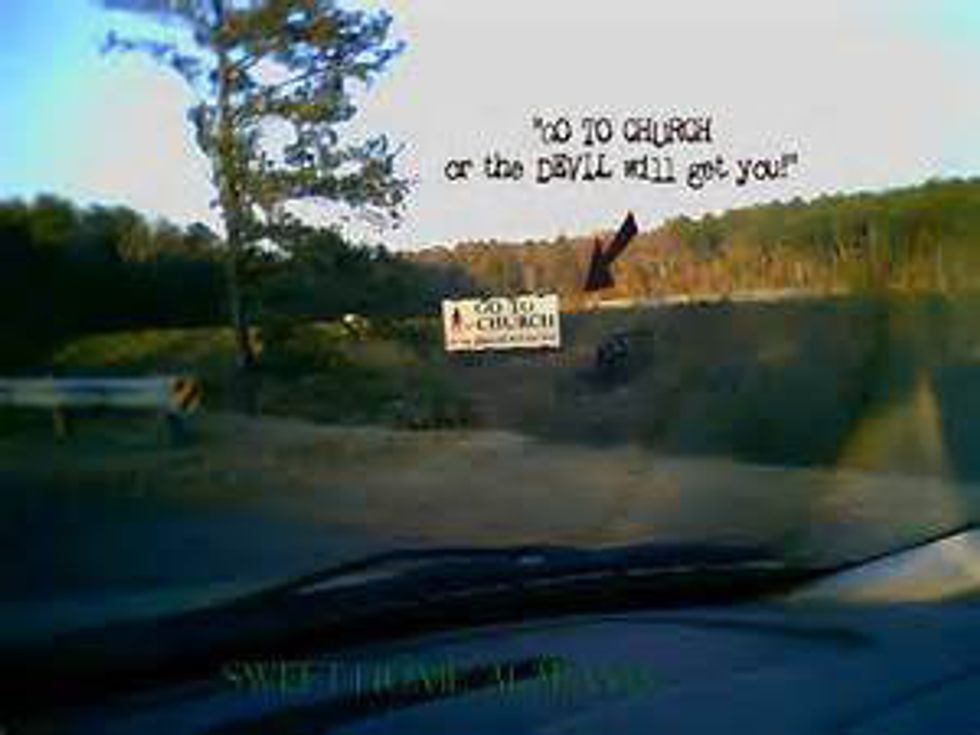 18. You've seen the "Go to church or the devil will get you sign" at least once.