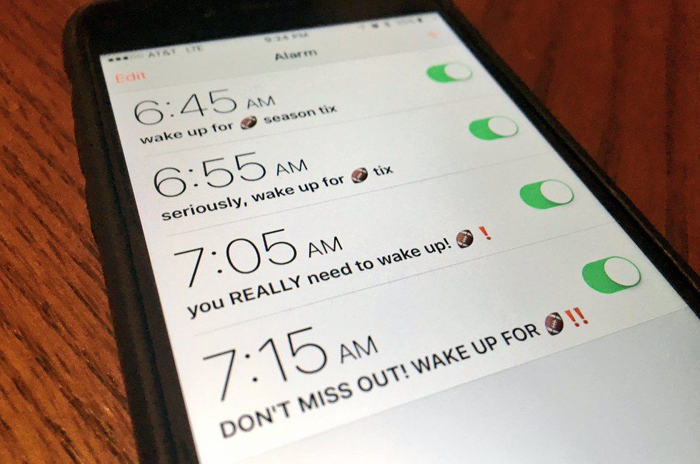 1. You are incapable of having an 8:50 class yet willingly wake up at 6:30 AM to buy football and basketball season tickets.