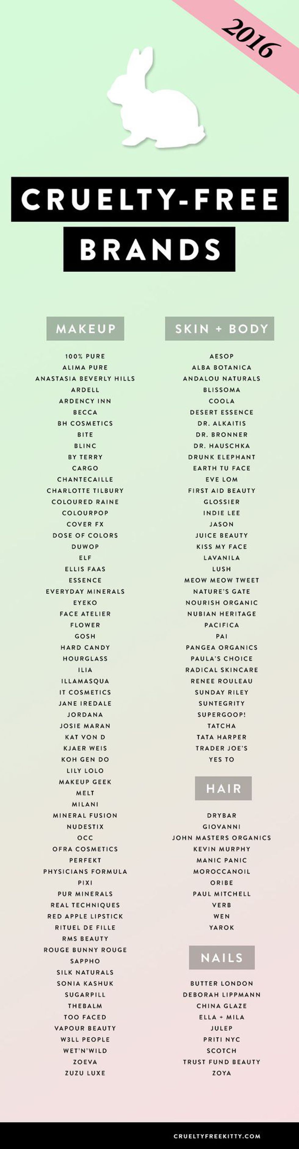 Here is the 2016 list of cruelty brands as compiled by PETA: