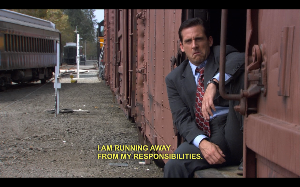 Michael Scott (AKA one of TV's greatest characters of all time) understands work, people, and life in a frighteningly accurate way. My fellow college students understand that this point in the semester is comprised of a few emotions: including but not limited to fall adventure fever, studying apathy, lack of sleep emotional breakdowns, disdain toward professors, and confusion as to why we do this thing called "college" in the first place.