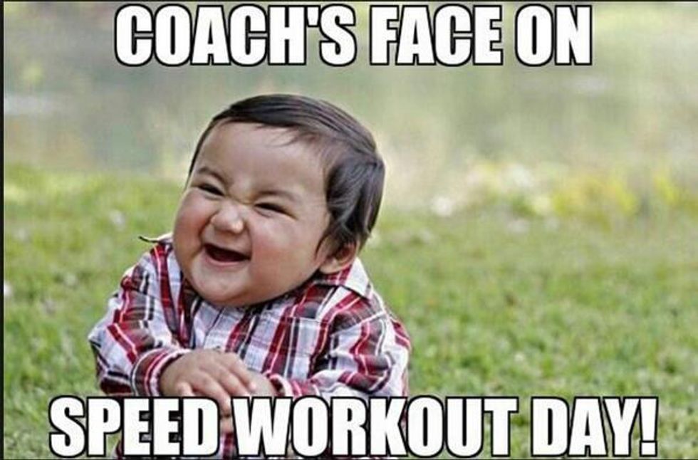 5. Your coach is the worst. You were definitely cursing his name by the time you were halfway through whatever "hilly tempo fartlek" junk he had the audacity to come up with.
