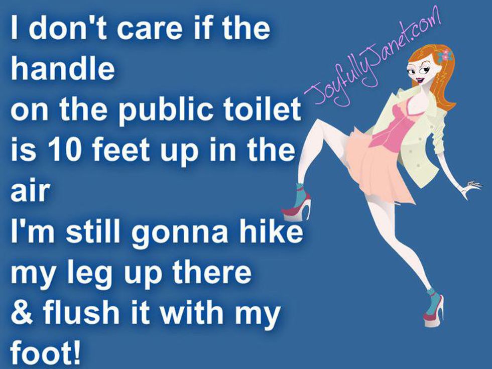 12. Refusing to touch the germ-ridden toilet handle with your hand so you have to pull out your Tae Kwan Do moves and flush the toilet with your foot.