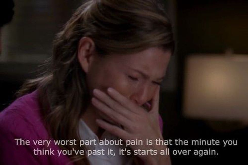 Dr. Grey informs us that this is okay. Just when you think the pain is gone and you have gotten past it is when it all starts again. This is okay. And normal.