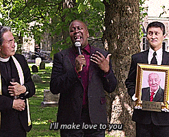 13. Also, he does things like accidentally sing sex songs at Korean funerals.