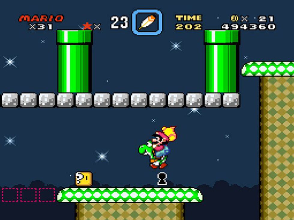 Not only does this game introduce gameplay mechanics new to the Mario series, like the spin jump, but it also marks the first appearance of Yoshi, and fresh new power-ups like the cape feather and locations like the Ghost Houses.