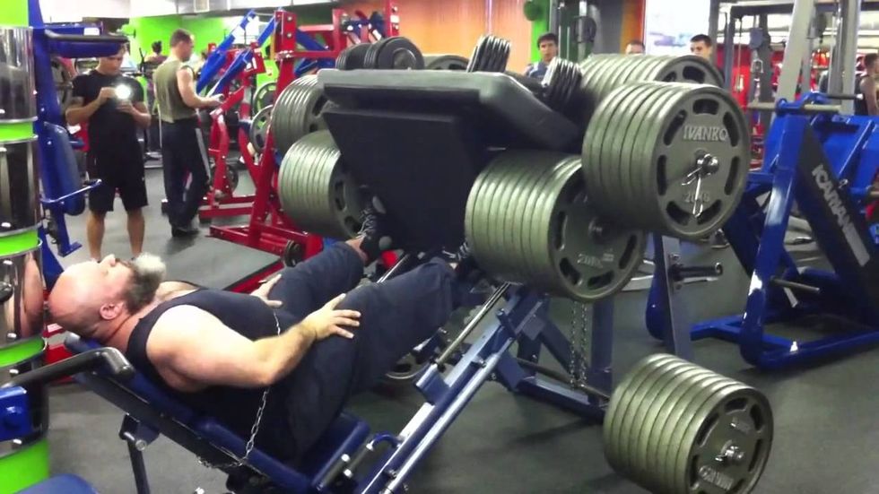 This beefed up 50-year-old guy that thinks he needs every plate in the gym to do his leg press and he's not even doing it with a full range of motion.