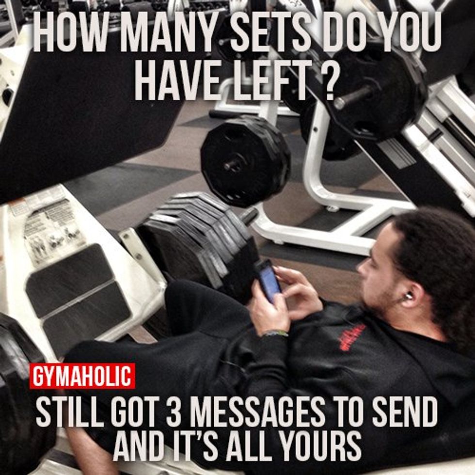 There are 1,000,000 people in this gym, and this douchebag is taking 5 minutes between sets to text and Snapchat.