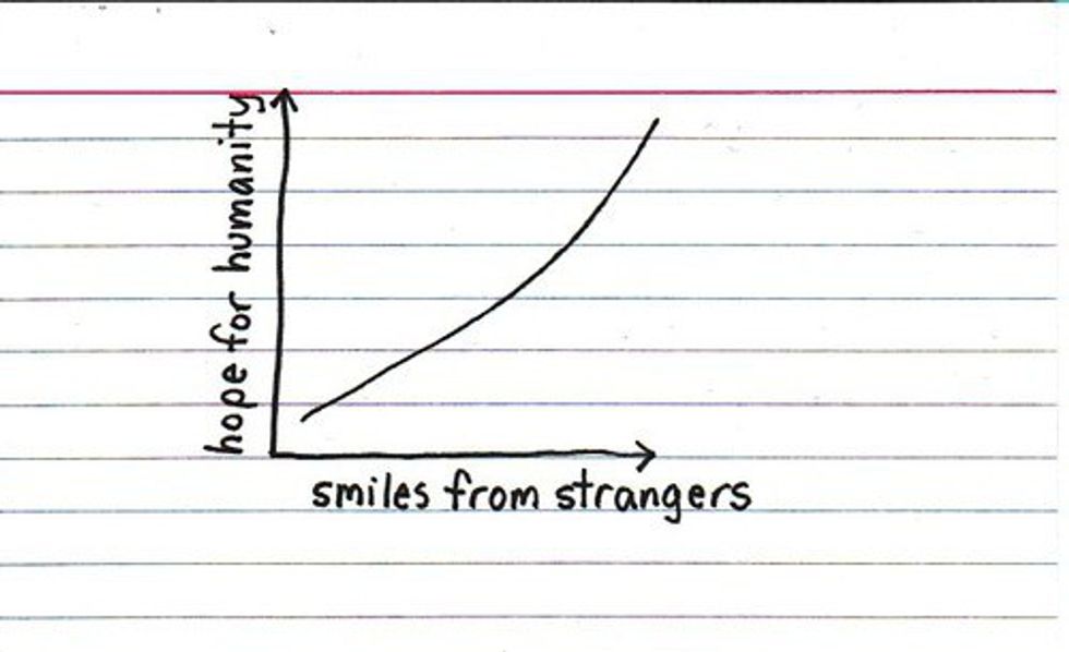 4. Give a compliment - it feels so nice to have someone compliment your hard work, outfit, or just about anything! You don't need to hand out this compliment to a close friend, either - compliments seem more genuine and thoughtful when given by an acquaintance. Normally we just think these thoughts in our own head, but why not share the love and say them out loud?
