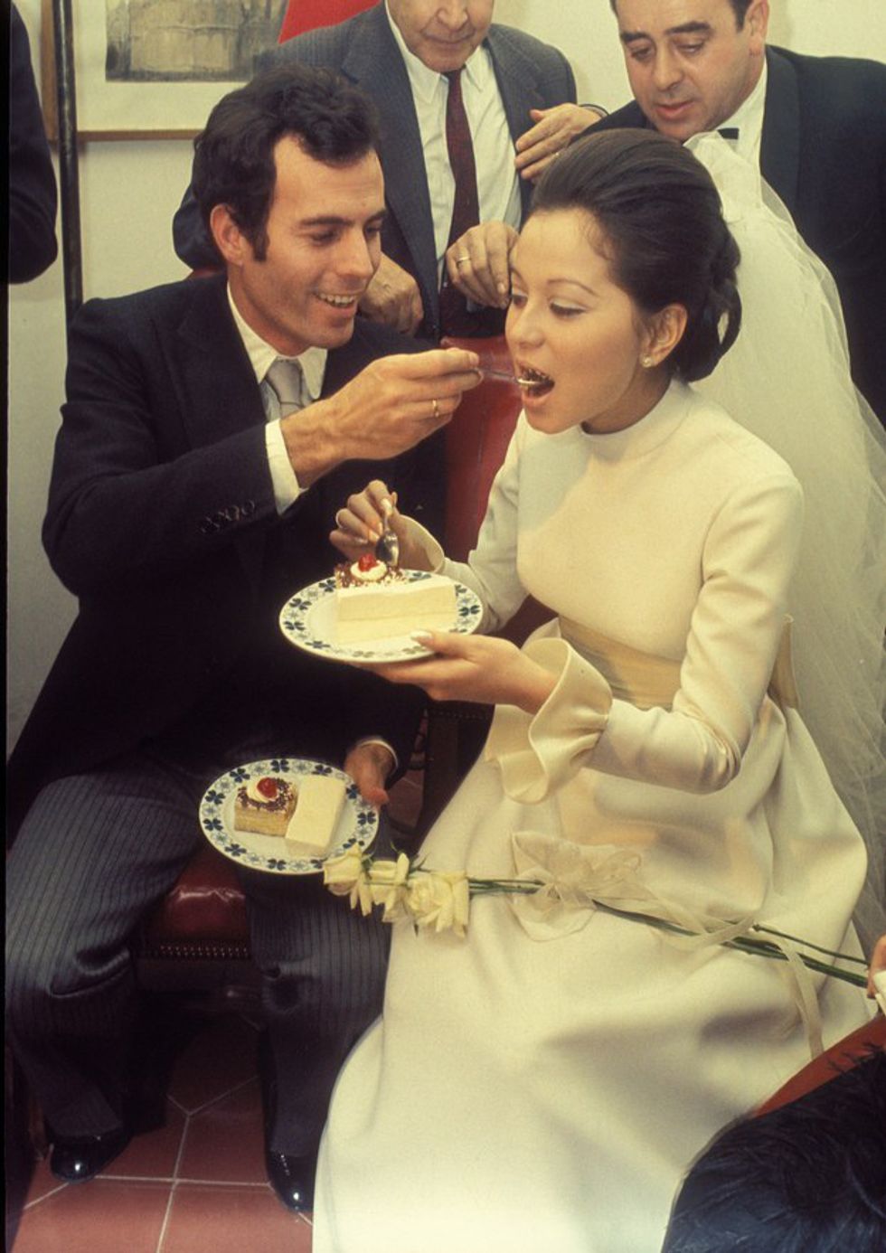 Elizabeth was a vision in green for her fourth wedding. The unconventional dress choice was fitting as the marriage itself caused quite the scandal. It occurred barely a year after the death of her third husband, Mike Todd, who was a friend of her groom. To further complicate things and stir up outrage, her new husband was Eddie Fisher (remember him?) who began the relationship with her while he was still married and ultimately left his wife for her. It certainly didn't help that Debbie Reynolds and Taylor had been close friends prior to all of this. Talk about a classic case of the man-stealing best friend.