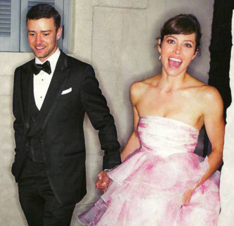 As far as colored dresses go, it's hard to get better than Jessica Biel did back in 2012 when Justin Timberlake put a ring on it.